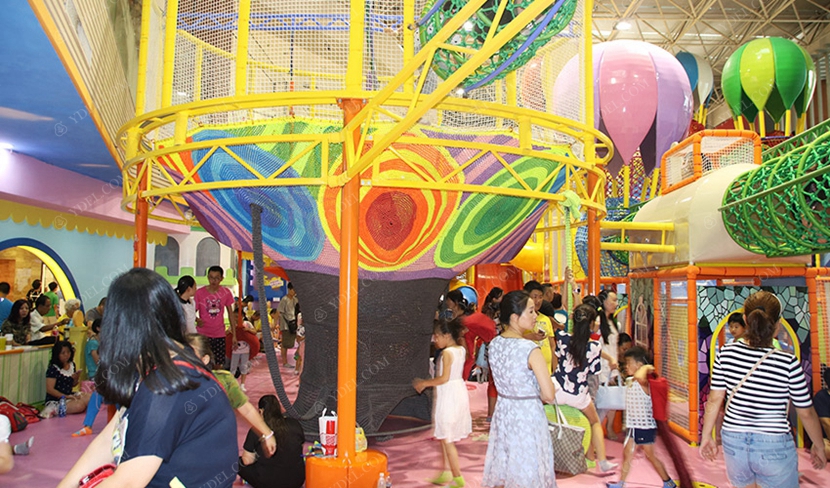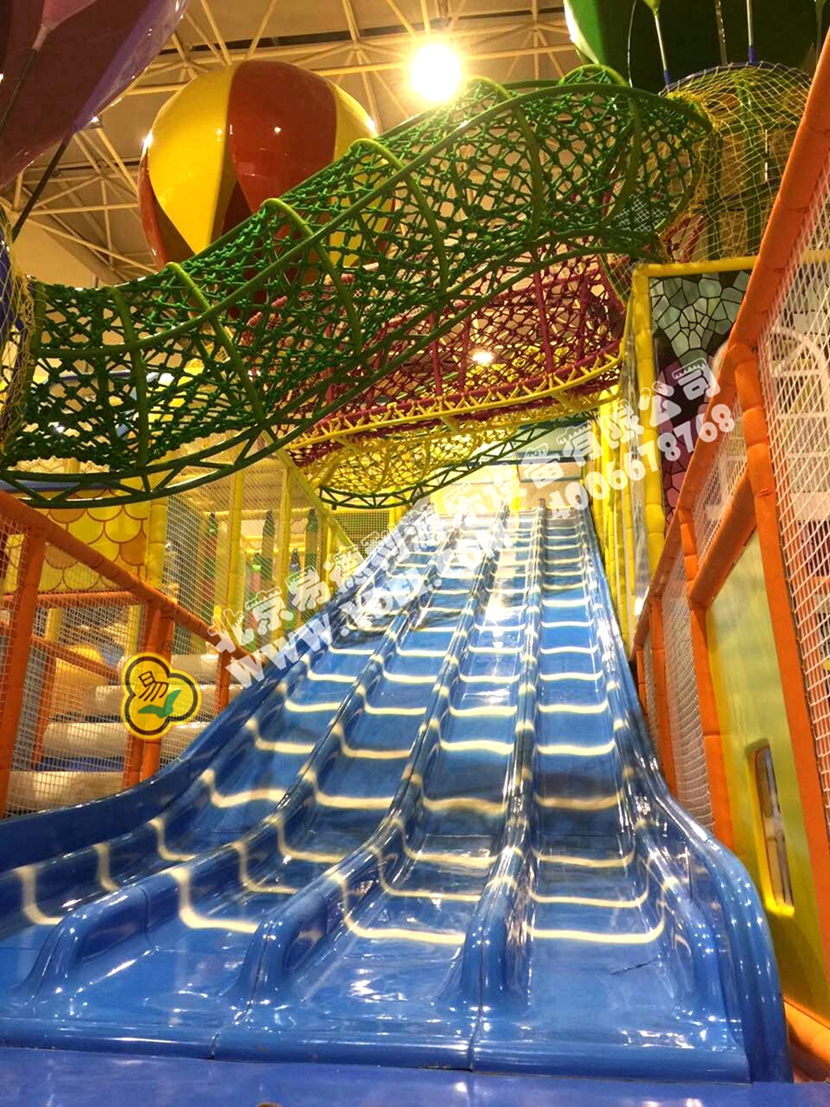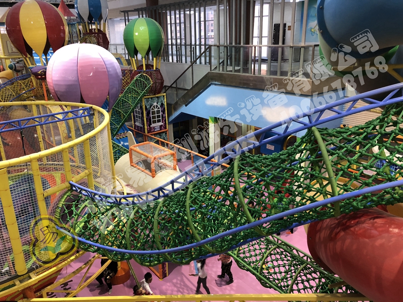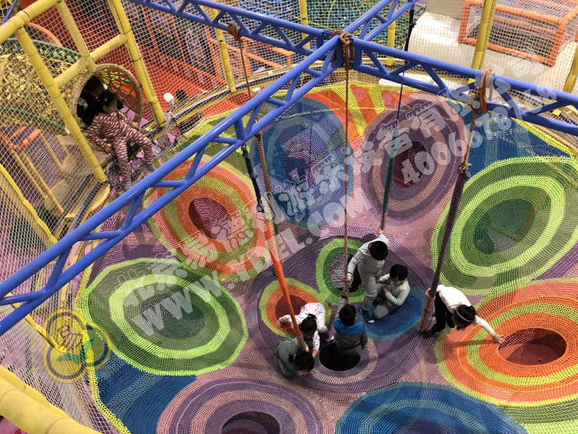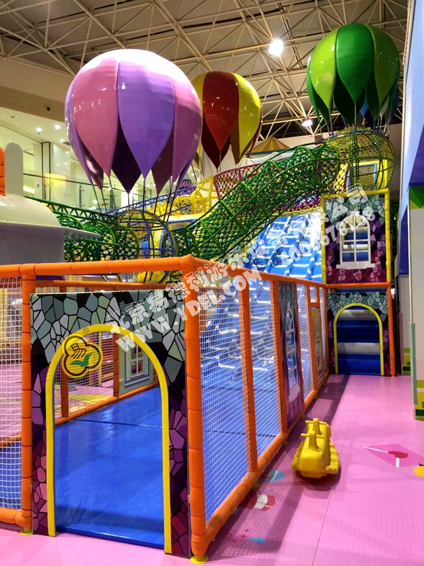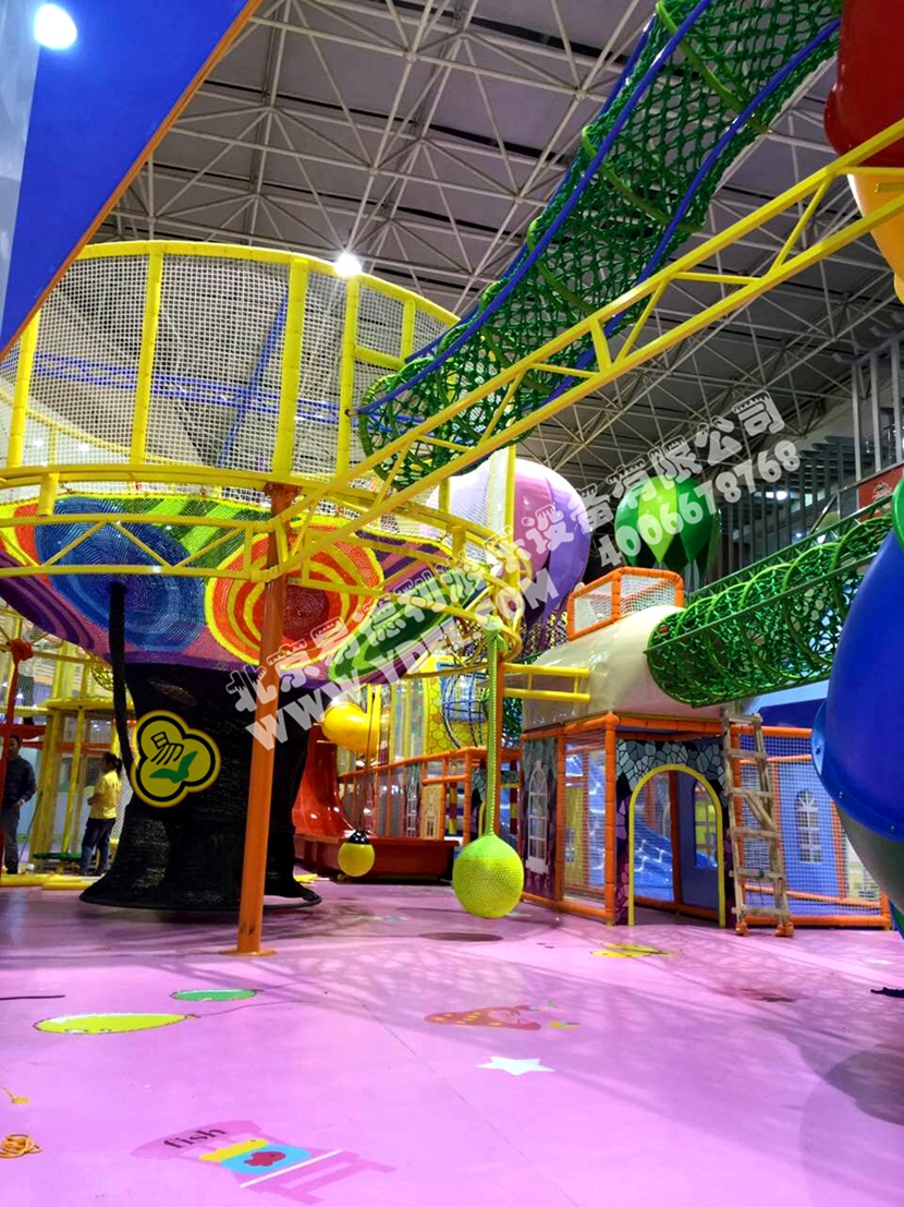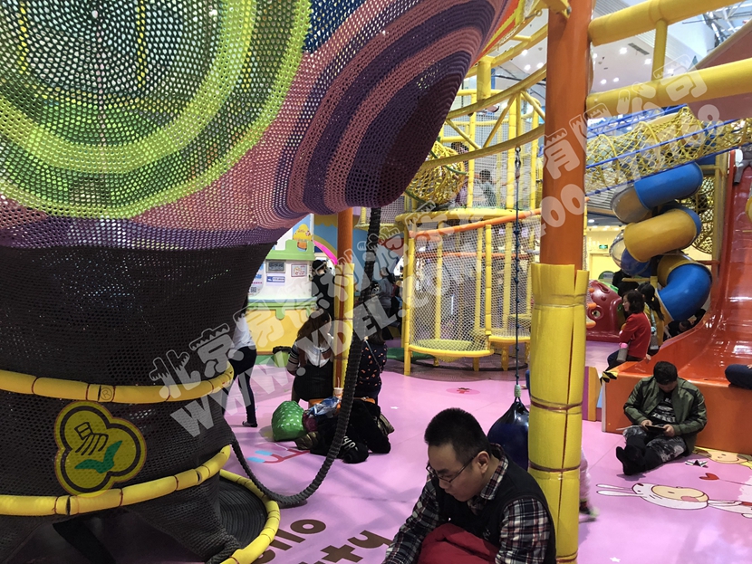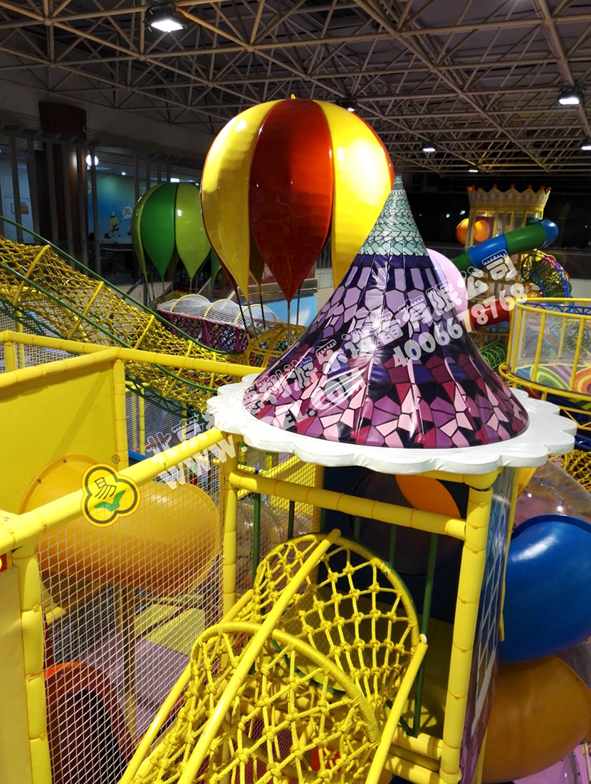 分兩個區(qū)域:淘氣城堡和闖關(guān)區(qū);這個項目集成了多種新產(chǎn)品及設(shè)計理念,我們的設(shè)計人員與安裝人員是功不可沒的!下面我?guī)纯催@些新奇好玩的游樂設(shè)備!
