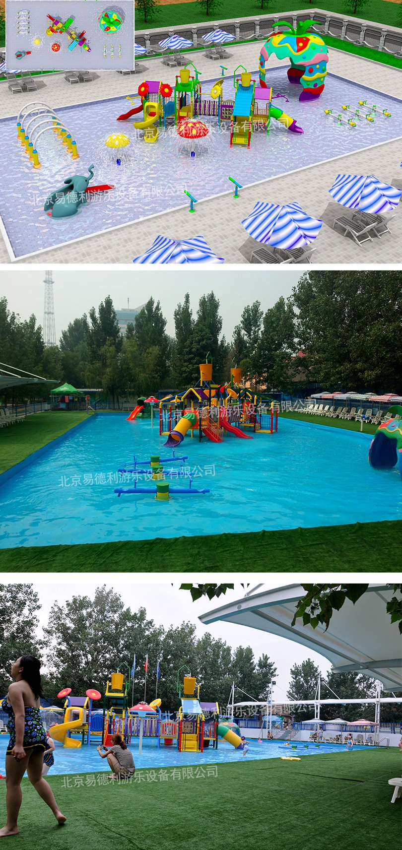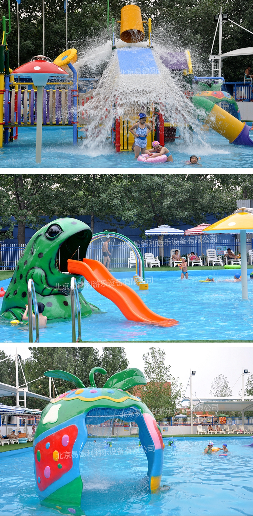 張著大嘴的青蛙滑梯,造型奇特的蘋果屋,各種水槍、蹺蹺板,小水寨不斷輸送著一桶桶水,一潑而下,酣暢淋漓。