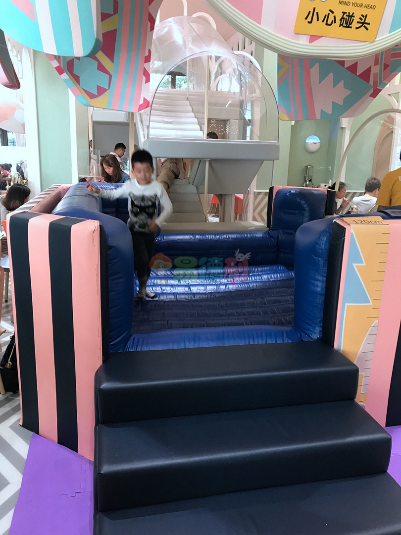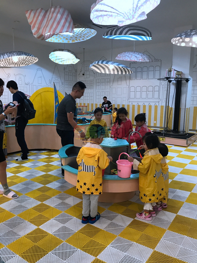 從模擬小鎮經過一條長長的時空走廊就到了大童區了,這里是孩子們的天堂,絕不止是布置的像天堂!這里有各種各樣的滑梯,攀爬梯,手工作坊占滿了整層樓,像一個巨大的迷宮。家長們也不需閑著,在這里,和你的寶貝做一件屬于她自己紀念品吧。當然最矚目的是一條s形的滑梯,可以直接從二樓滑到一樓的餐廳區。