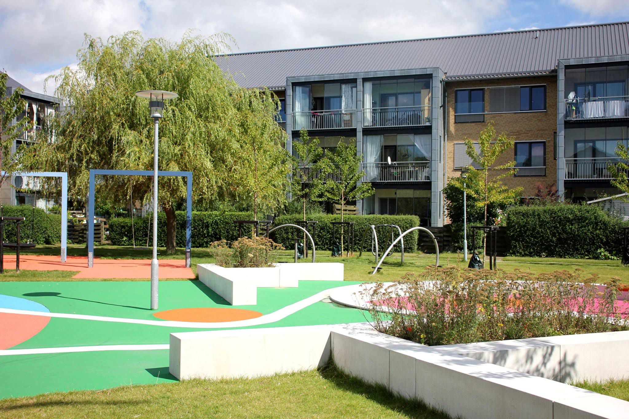Opland在投標和執行階段擔任負責整修住宅區的總顧問,并在此方面規劃了Charlottenkvarter內部區域連接。因此,我們在整個街區規劃了一個有許多活動和生活空間的公園區,以期為Hedehusene的居民,游客和公民創造一個共同的戶外空間。