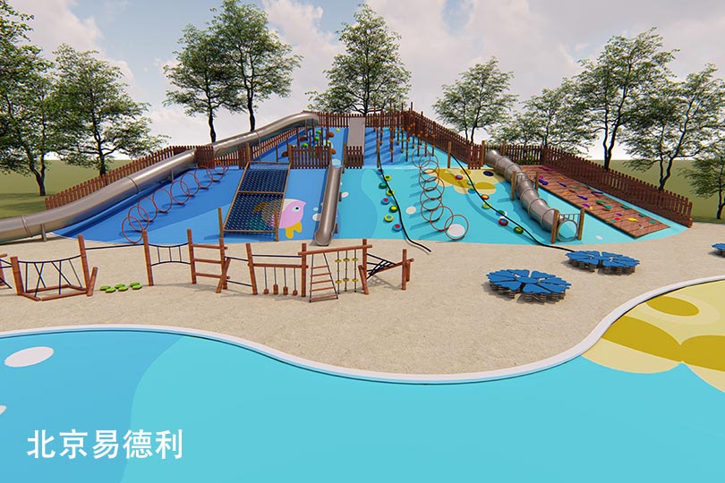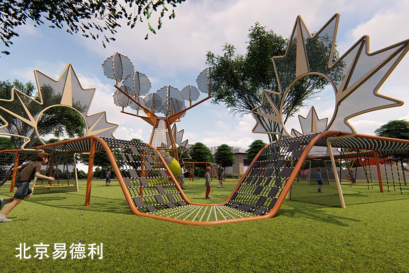 這類一般以中大型的攀爬網、或者攀登網為主,高度不超過兩米的游樂設備為主,利用高度差讓孩子們在安全保護下進行上下攀爬跟翻閱,搭配上定制的滑梯,讓小朋友流連忘返。